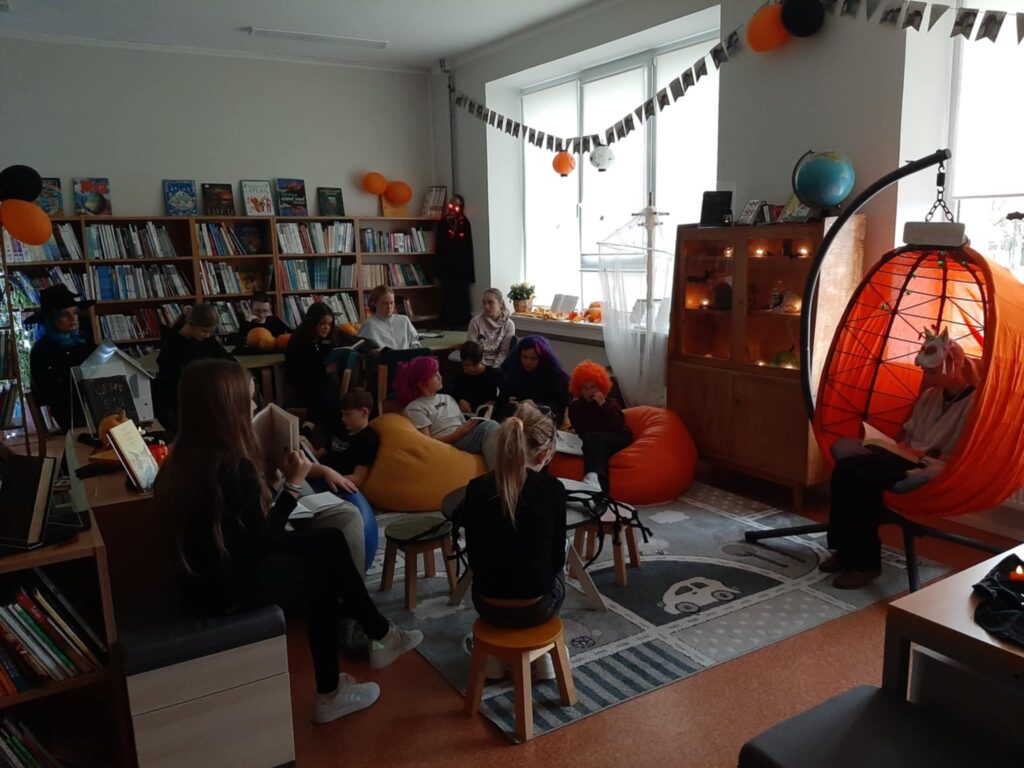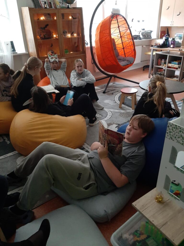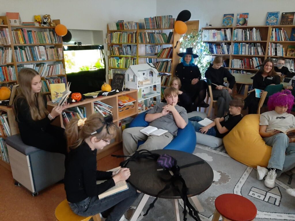 Lisaks ühistele tegevustele Tapa koolimajas tähistas 5.b klass kirjanduse tunnis Halloweeni päeva natuke teises võtmes. Kurjuse ja vägivalla asemel räägiti ja loeti pigem maagiast, nõidumisest, loitsudest ja nõidadest. Igaüks valis raamatukogus väljapandud “maagilistest” raamatutest ühe, tutvus põgusalt selle sisuga ja valis lühikese, kuid põneva lõigu, mida sealt teistele ette kanda. Oli põnev ja mõnus kuulamine!