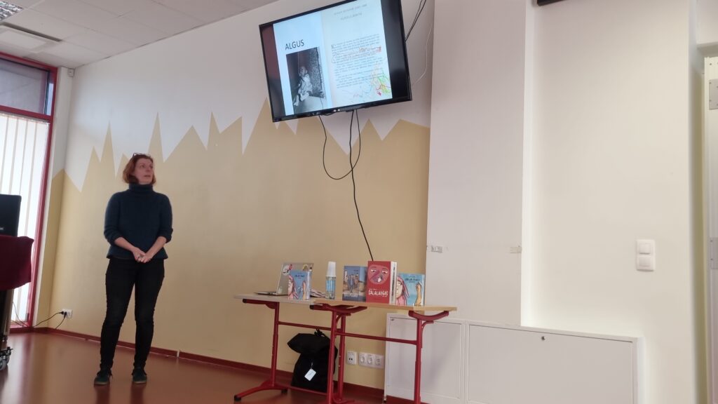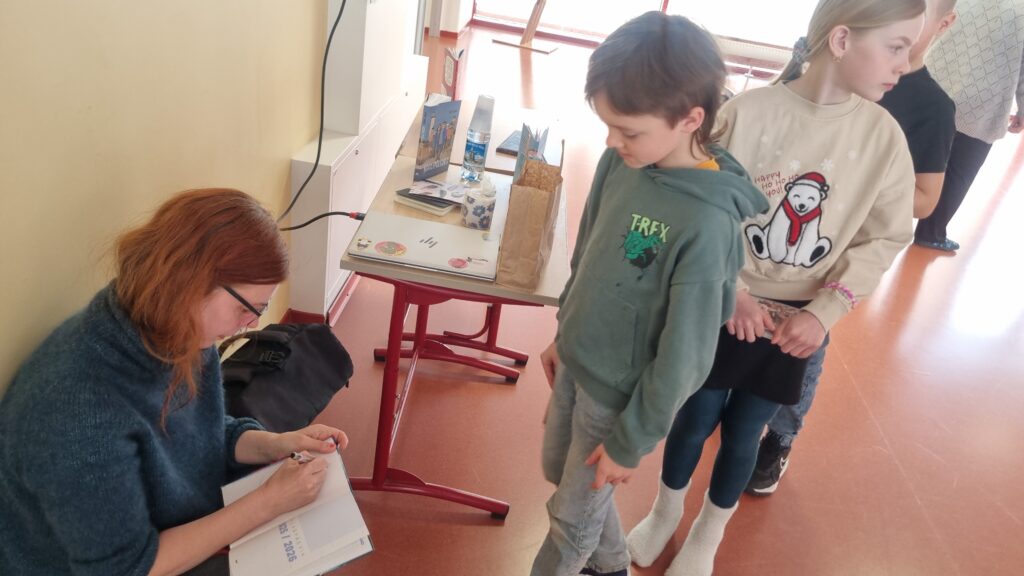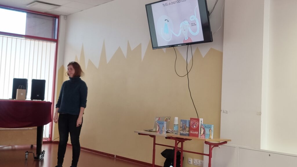 Ulla näitas raamatuid, mida ta on illusteerinud ja ka ise kirjutanud, rääkis nende sisust ja tegelastest. Ta töötab Lastekirjanduskeskuses põhikohaga.