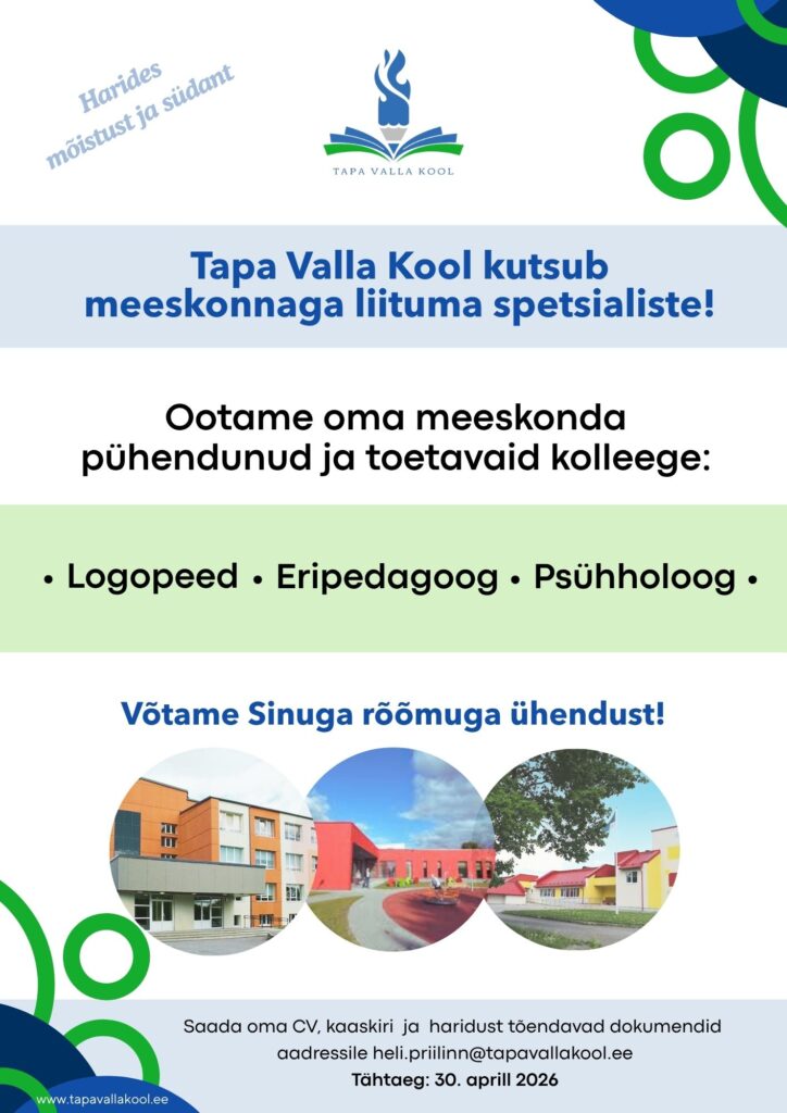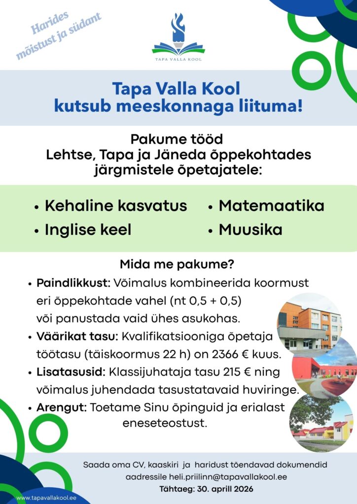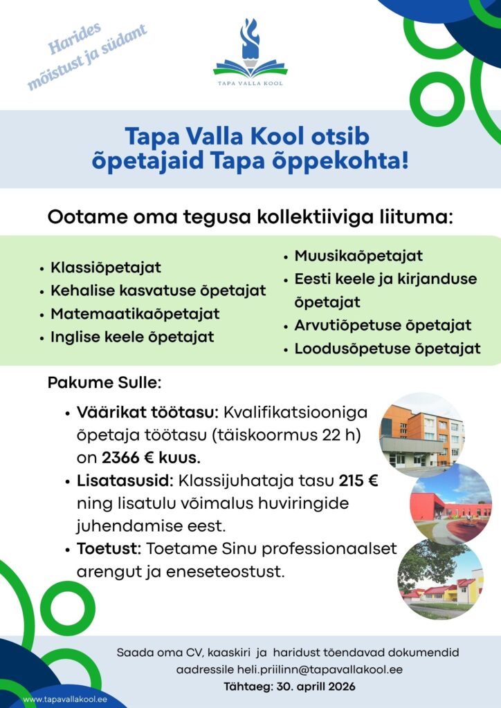 Taotlus 1.klassi astumiseks ja koolitarvete nimekiri
